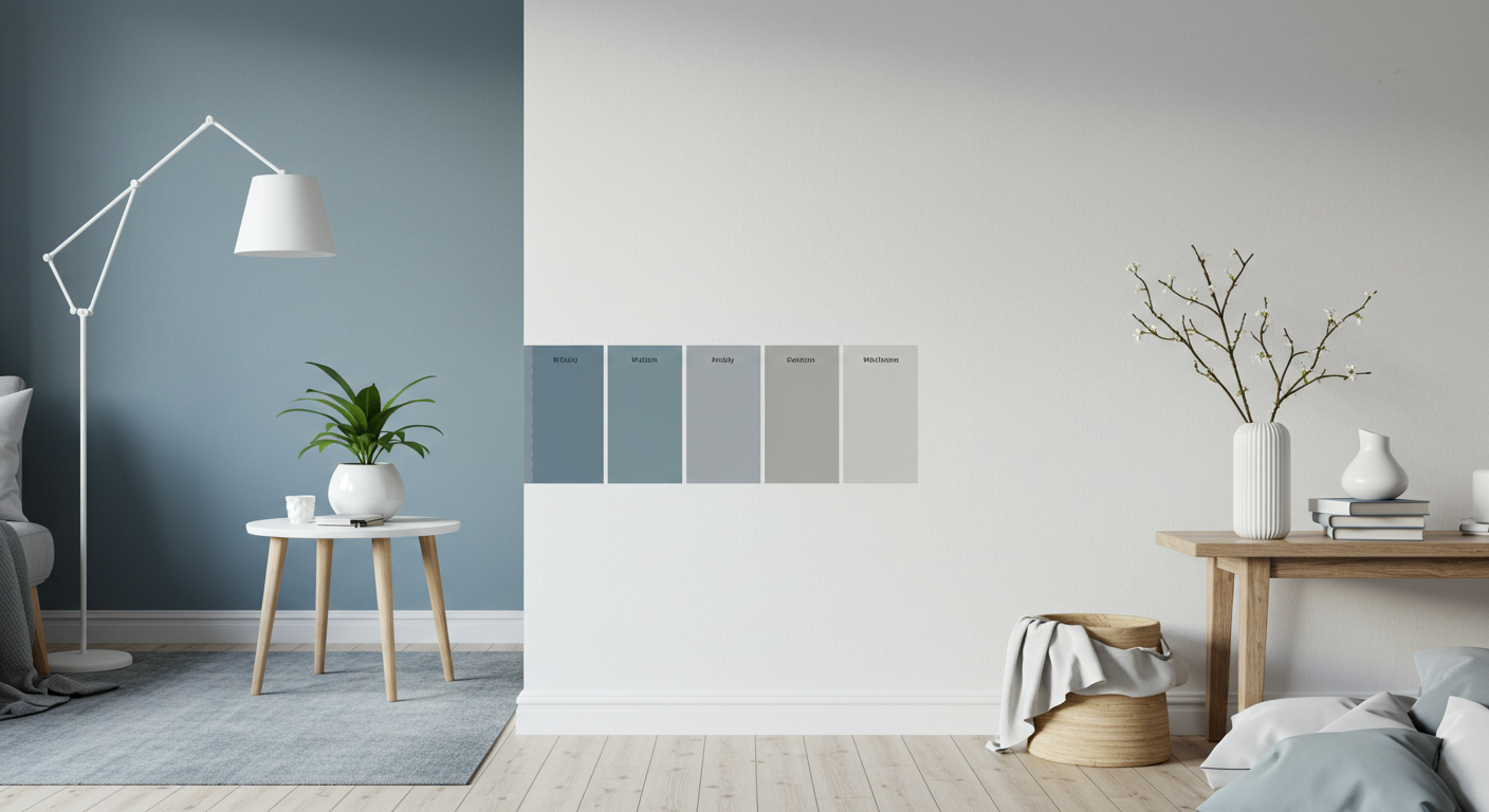 - 포인트(Accent 10%): 무톤 블루(#5C7FA5, LRV 30) 또는 더스티 그린(#7B8F7A, LRV 35) → 북유럽 특유의 청량감·자연 친화성